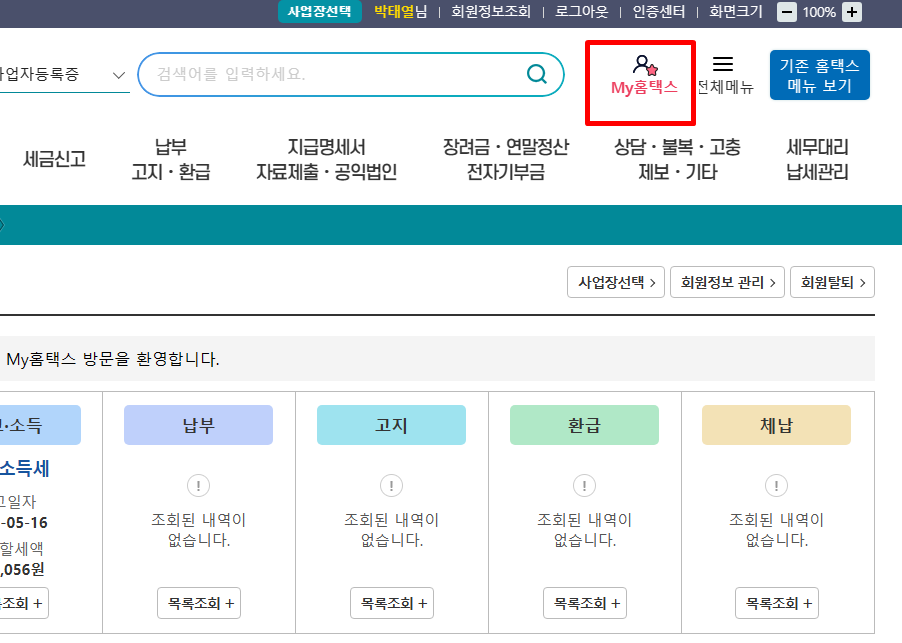 - 홈택스를 접속하여 my 홈택스를 클릭한다.